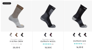 Enfin chez RevolutionRace/RVRC, les chaussettes de randonnée pour homme. Et pour femme, les chaussettes de randonnée. Avec la marque Suédoise, on a plutôt un bon compromis entre prix et technicité.