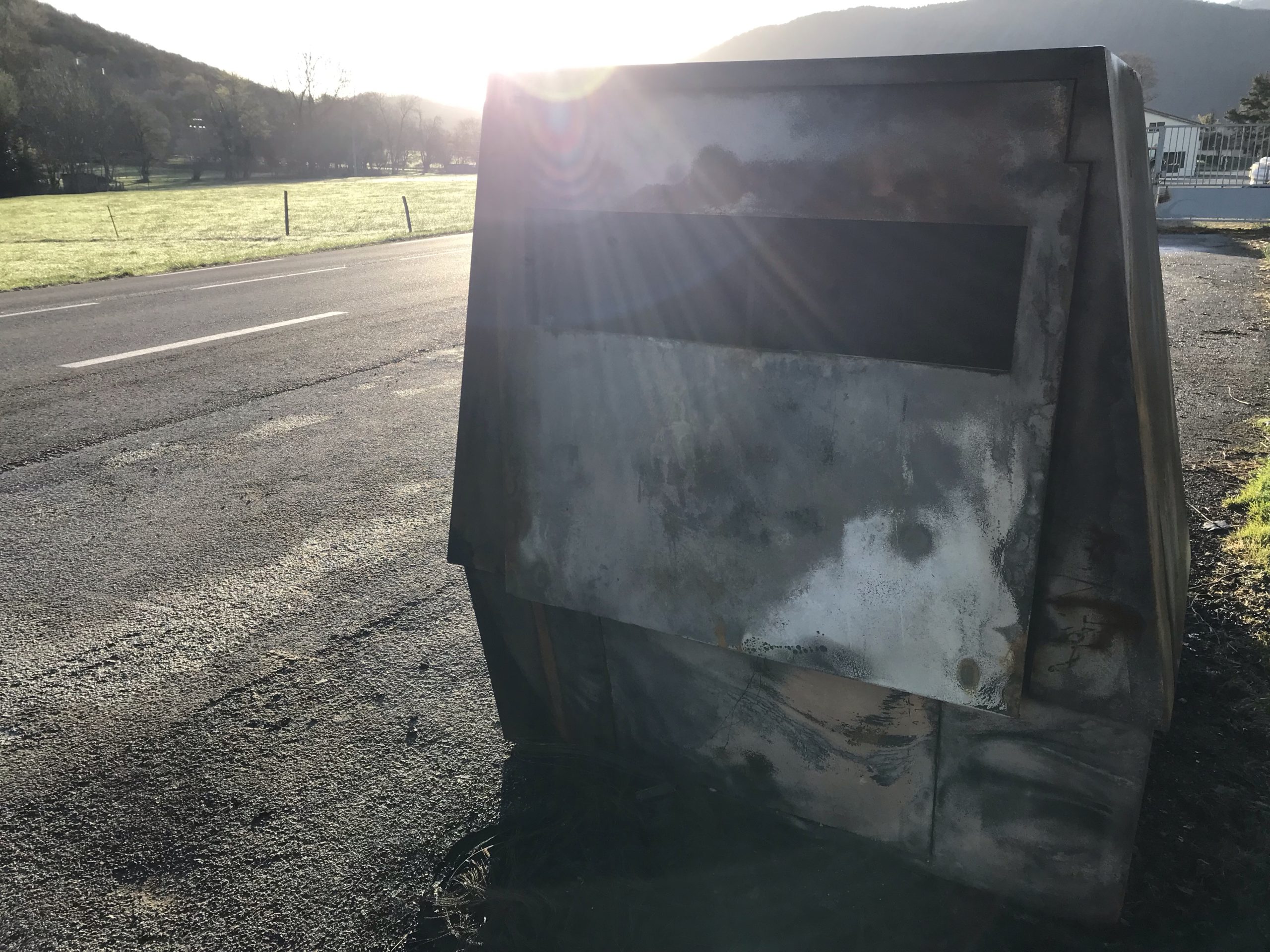 La première victime de la semaine est le radar tourelle de Lucsan. Lui qui domine les automobilistes sur cette portion de la RN125 a sombré dans le fossé. Tombé de son piédestal, tronçonné surement avec une meuleuse, il vient de se rendre compte que même perché tout la haut, il pouvait chuter. Et comble de malchance, victime d'un court-circuit ou d'un acte volontaire, son flash a pris feu dans le fossé. Comme quoi on peut ignorer dans son tourelle d'ivoire, et terminer au tapis.